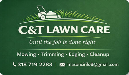 Hey, here at C&T Lawn Care service we give our best effort into every yard we do. We give up to a 20% discount on the first lawn cut! First time hearing about us? Give us a review, first impressions, suggestions were open to it all feel free to contact me personally.